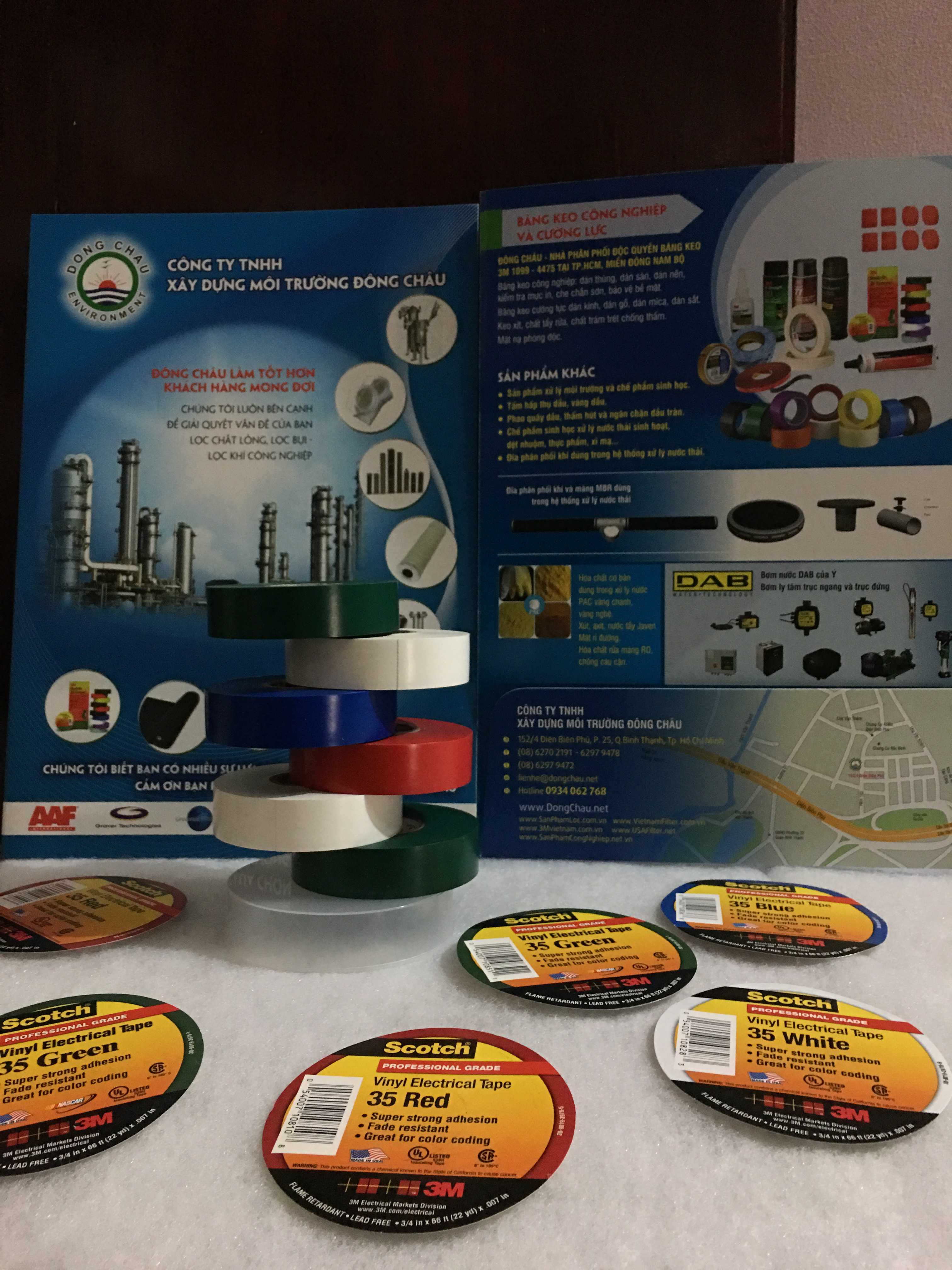 Băng keo điện Vinyl đa màu Scotch® 35 có độ dày 7 mil, là loại băng keo điện cao cấp có sẵn trong nhiều màu sắc khác nhau. Băng keo chống cháy này phù hợp cho việc nhận dạng dây và pha, mã màu của các đầu dẫn động cơ và hệ thống ống, và để đánh dấu các khu vực an toàn. Băng keo này được đánh giá là 600V và chịu được dải nhiệt độ từ 14 đến 221 °F (-10 đến 105 °C).