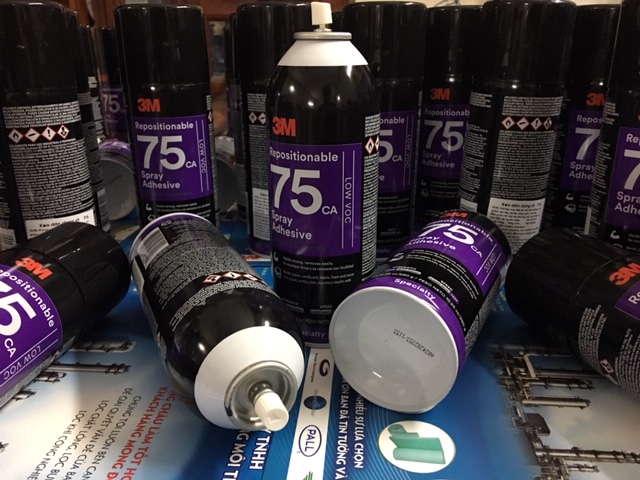 Keo xịt 3M 75 là một loại keo dính nhạy cảm với áp suất cao, tạo ra một liên kết với nhiều vật liệu nhẹ và thích hợp để giữ hoặc định vị tạm thời. Nó sẽ có tác dụng sau vài giây, nhưng có một phạm vi dài hơn cho phép lặp lại nâng và định vị lại các vật liệu.