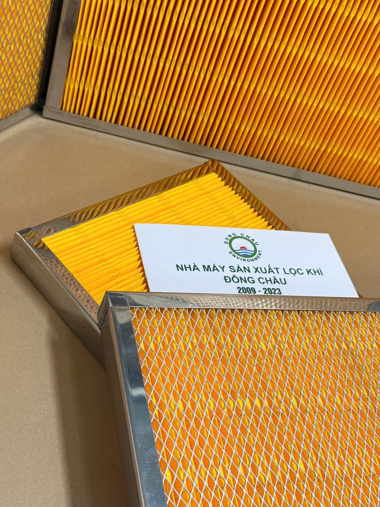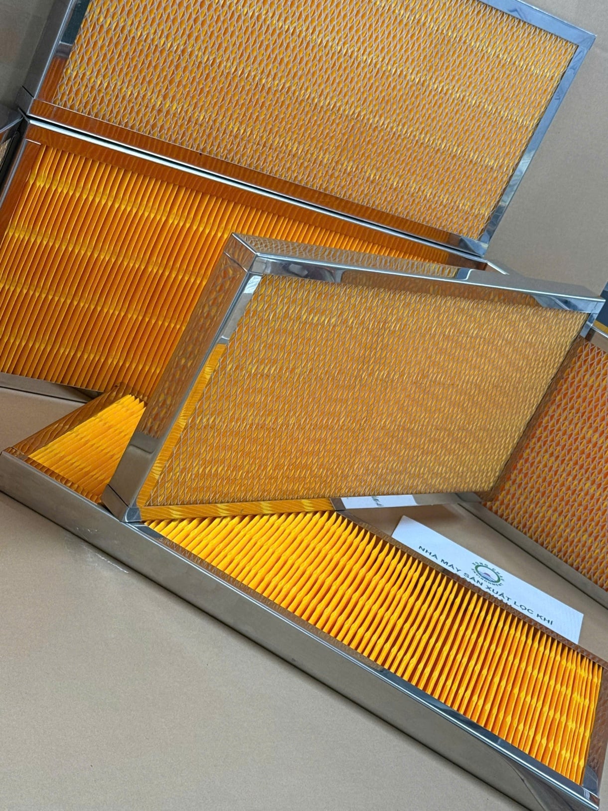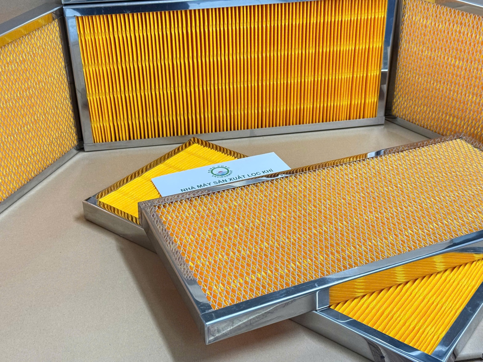 sản xuất Khung Lọc Gió Giấy Cellulose Màu Vàng Xếp Nếp