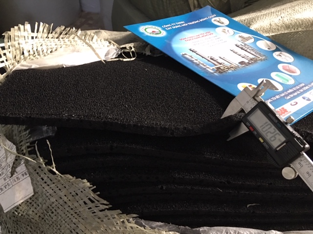 • Vật liệu carbon hoạt tính chất lượng cao. Bột than hoạt tính từ vỏ dừa hoặc than đá có hiệu suất lọc cao và được dính chắc vào xốp.