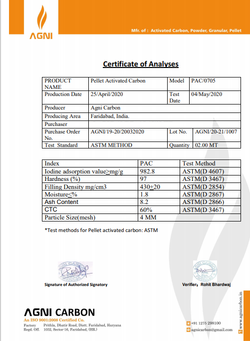 thông số kỹ thuật Than hoạt tính hình trụ ovio Ấn Độ