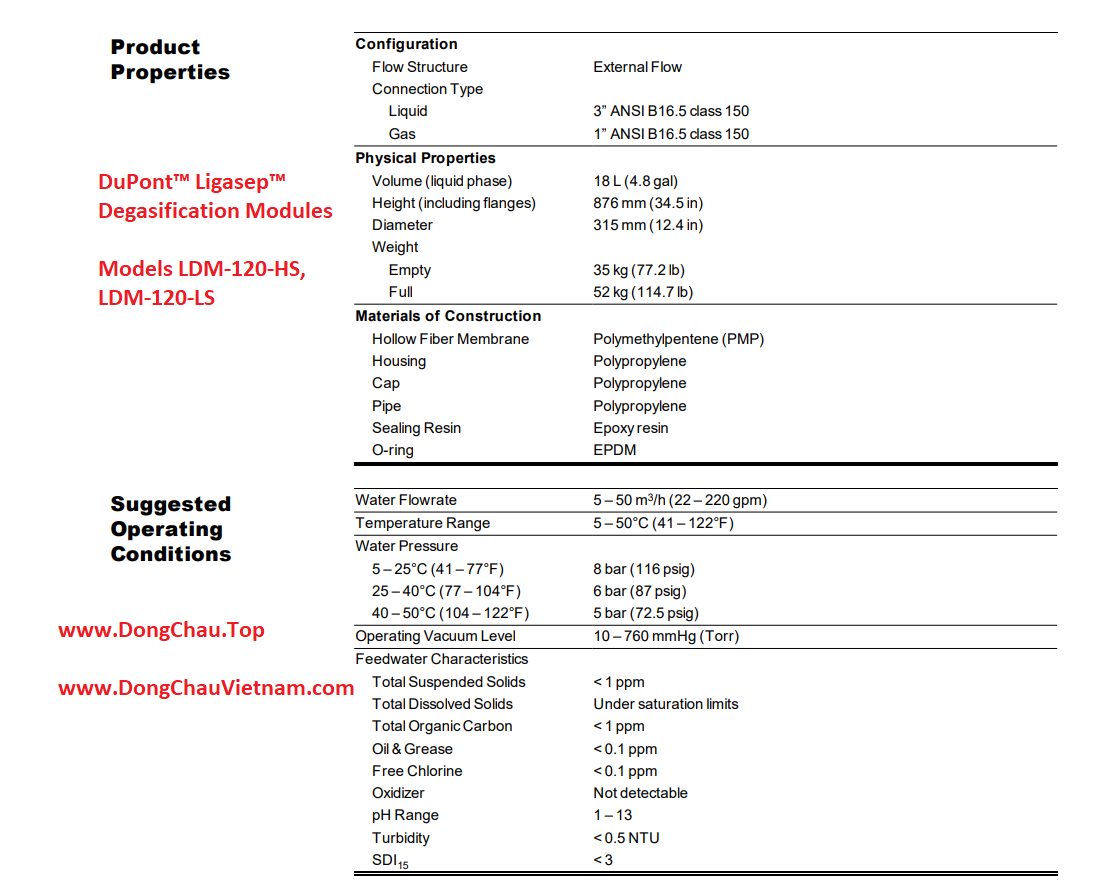 Màng lọc UF Dupont LDM-120-HS sử dụng màng sợi rỗng Polymethylpentene (PMP) độc quyền, cung cấp khả năng chuyển đổi khí hiệu quả giữa chất lỏng và khí. Các mô-đun này lý tưởng cho việc khử oxy, khử cacbon và điều khiển khí của chất lỏng. Màng lọc này có các đặc điểm nổi bật sau: