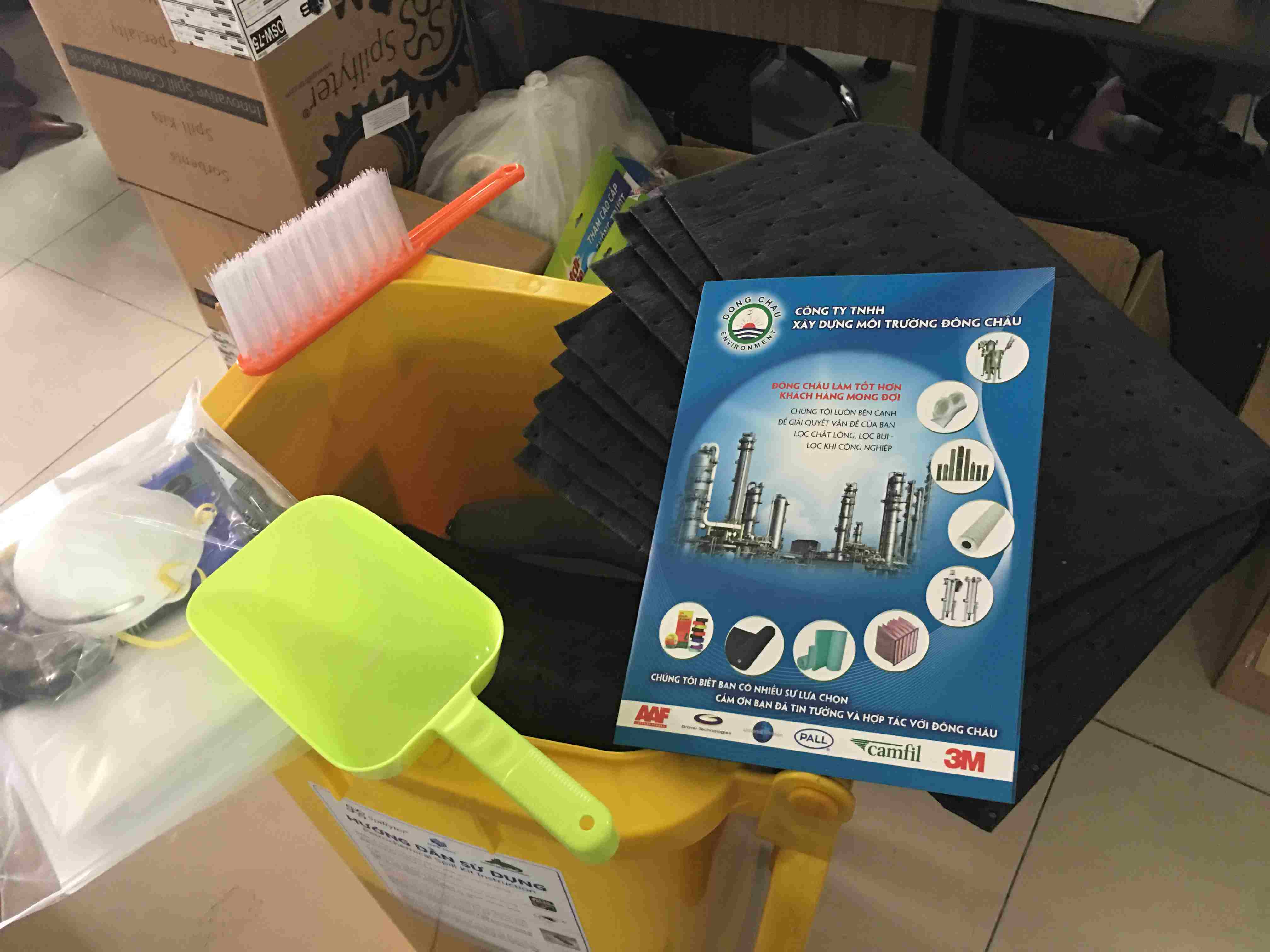 - Bộ Kit ứng cứu nhanh tràn vãi axit 120L thùng có màu vàng rất dễ thấy – chống thấm để tránh bị hư hỏng, sạch sẽ và gọn gàng, bánh xe di chuyển trên mặt đất thô thành phần có thể dễ dàng di chuyển bất cứ nơi nào trong nhà máy, nhanh chóng đến hiện trường.