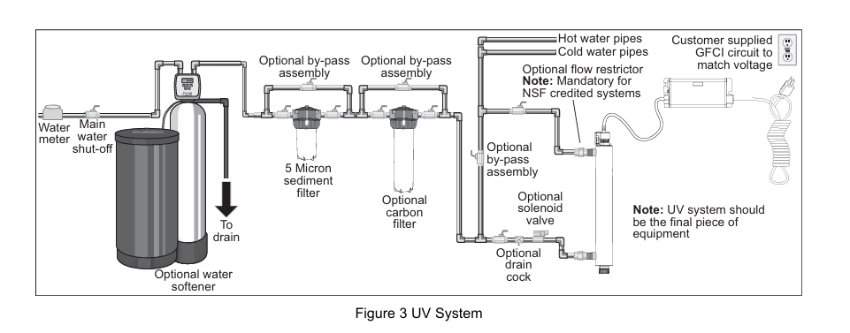 1. Nhiệt độ buồng UV: Nếu đèn sáng trong thời gian dài mà không có dòng nước đi qua buồng UV, nước trong buồng UV có thể trở nên rất nóng, dẫn đến nguy cơ cháy bóng đèn. Để tránh tình trạng này, người sử dụng nên lắp van solenoid để xả nước khi nhiệt độ buồng đèn quá nóng hoặc áp dụng phương pháp làm nguội khác.