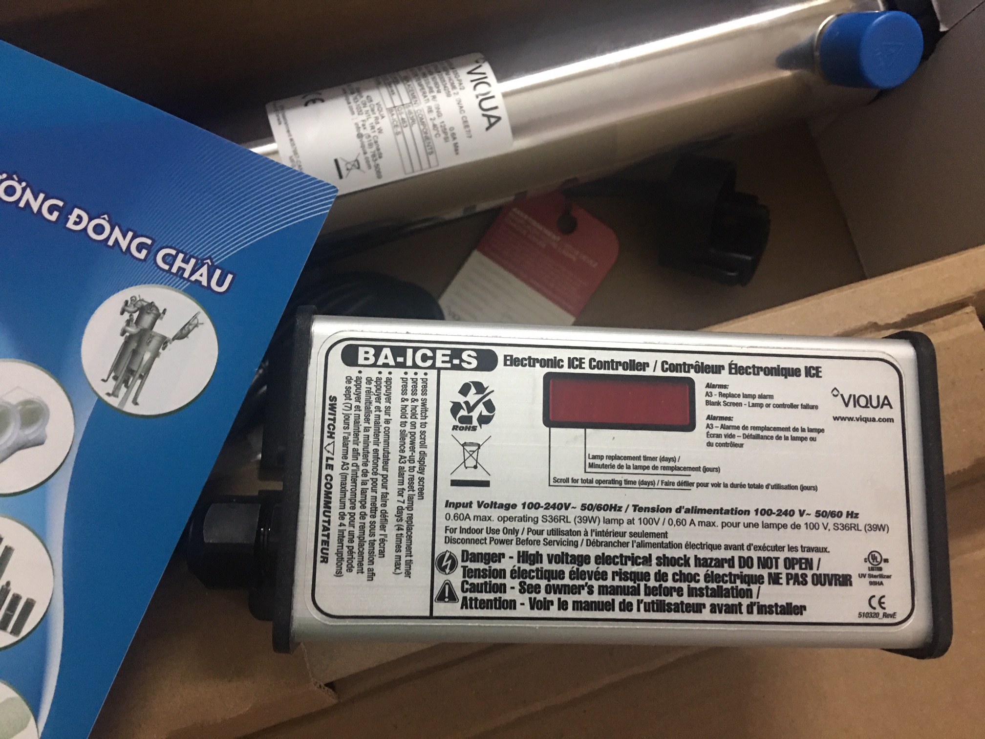 • Việc sử dụng bóng đèn thay thế không chính hãng, phổ biến trên thị trường, đã được chứng minh có thể làm hỏng module điều khiển của thiết bị UV Viqua.
